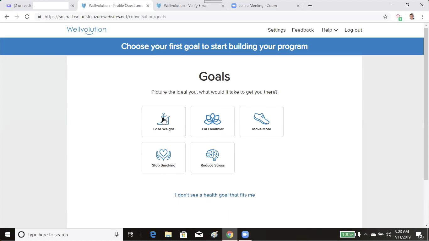 As a UX researcher at Solera Health, I lead a large user study for the launch of a health portal for Blue Shield of California. This study focused on the usability, likability and future features of Wellvolution. 12 participants went through the Wellvolution experience and provided feedback about the product via Zoom. 28 product backlog items were created from this study and 3 bugs were resolved prior to the pilot launch. I also conducted a landing page test, marketing material, was involved in Q/A throughout the process and provided feedback for future engagement.